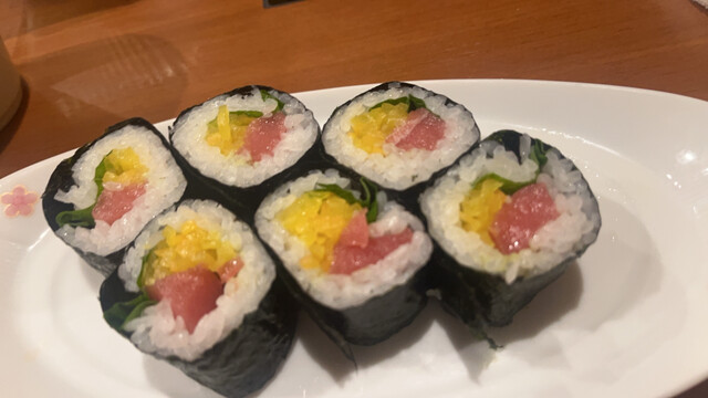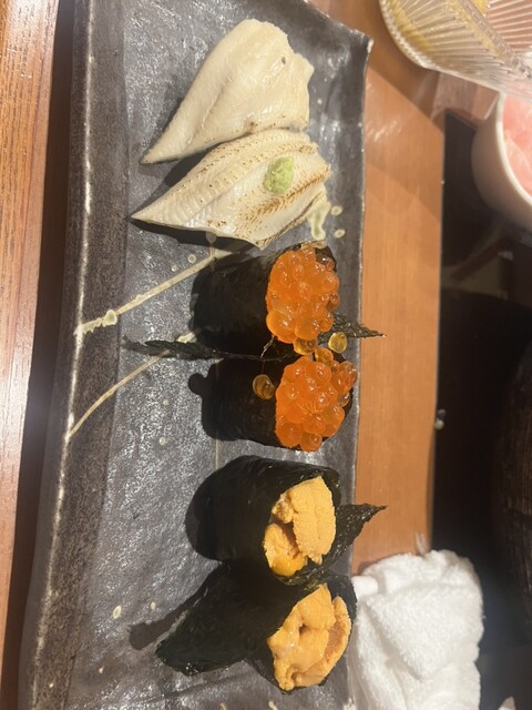 ⑧お寿司(うに、いくら、芽ねぎ、トロたく、カニ味噌)※トロたくには、大葉が入っていた珍しい
