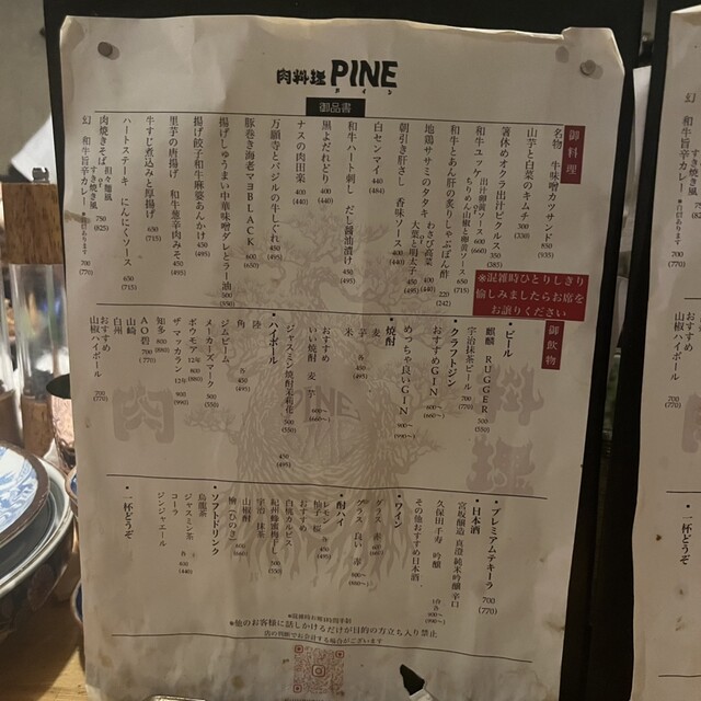 今日は人生で初の立ち飲み屋に行きました!!お肉を食べたくて調べたところ『肉料理 PINE』さんに出会いました!19時くらいに行った時には店内は満員で、20分ほど外で待ってから、入店できました。立ち飲みって満員のイメージがないのですごいなと思ったのが第一印象です。