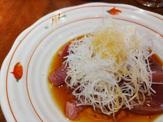 かつおのお刺身。ポン酢とオリーブオイルって合うんですね。