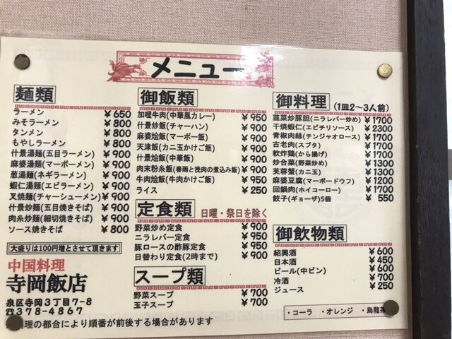 今日は時間に余裕があったので、寺岡飯店まで足をのばしました。