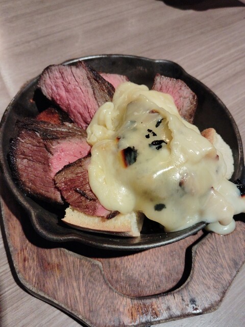 噛み応えのある牛肉グリルに、熱々のラクレットチーズをスタッフが、かけてくれます。
