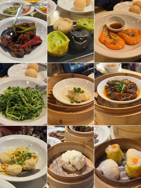 鴨肉の炭火焼き、エビ蒸し餃子、チャーシューまん、エビチョンファン、スペアリブの黒豆ソース蒸し、鶏足の黒豆ソース蒸し、ごま団子などは特に印象的で、どれも美味しく満足度が高かったです。