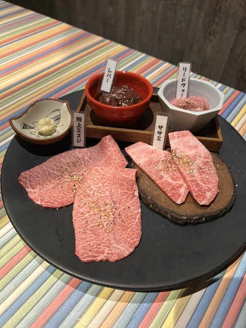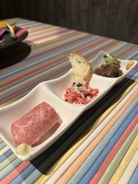 普通なら“前菜”で肩慣らし…のはずが、ここのは野菜の甘みとソースの厚みがエンジンを一気に温めてくるタイプ。続く霜降りユッケは白眉。トリュフの香りがふわっと立ち上がって、霜降りの脂と混ざった瞬間「あ、今日はすごい夜が始まるな」と悟る。