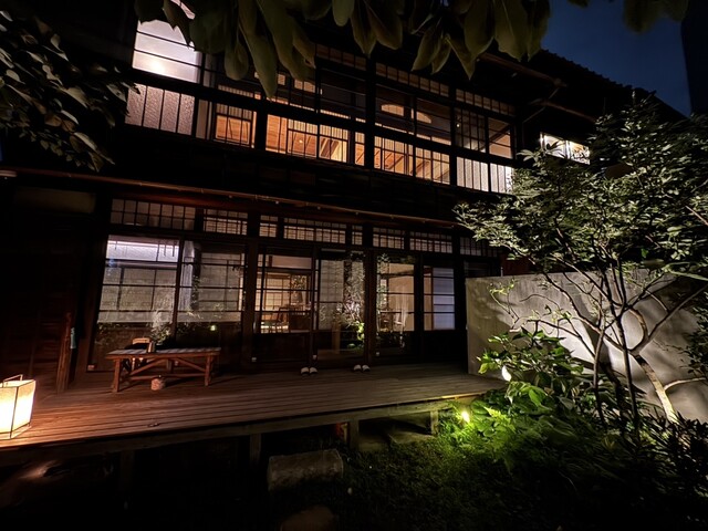 表は古民家つくりの日本食屋さんで、中庭に通じる細い道を抜けると古民家のお庭に6席だけのひっそり佇むバー。