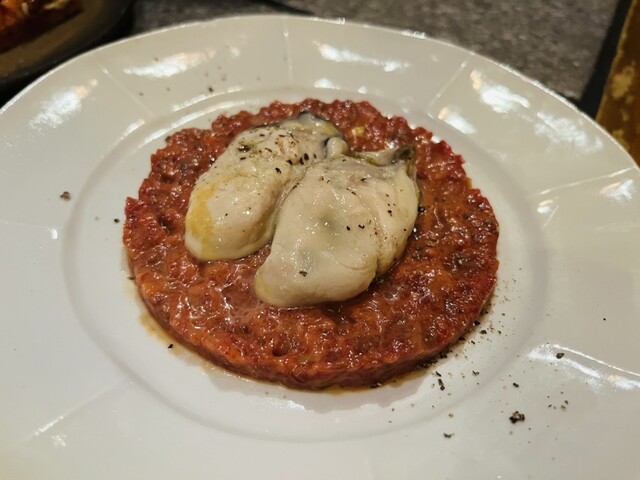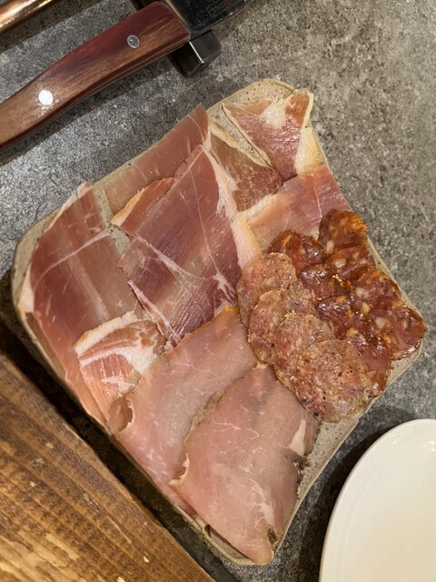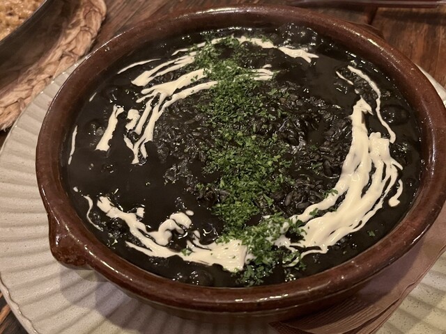 備後熟成仔猪のモルー、鬼北キジと天然キノコのパエリア、中村牛のタルタル、新秋刀魚と遠野パドロンの詰め物、国産生ハムの盛り合わせを2人でオーダーしました。飲み物はビールと赤ワイン。