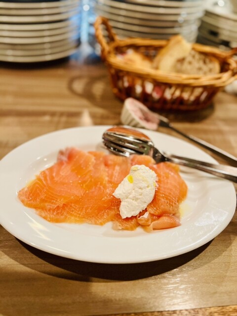 サーモンに添えられているクリームが凄く美味しくても私ももう1回食べたかったのに…連れに全部取られてしまうほど気に入ったようです(笑)