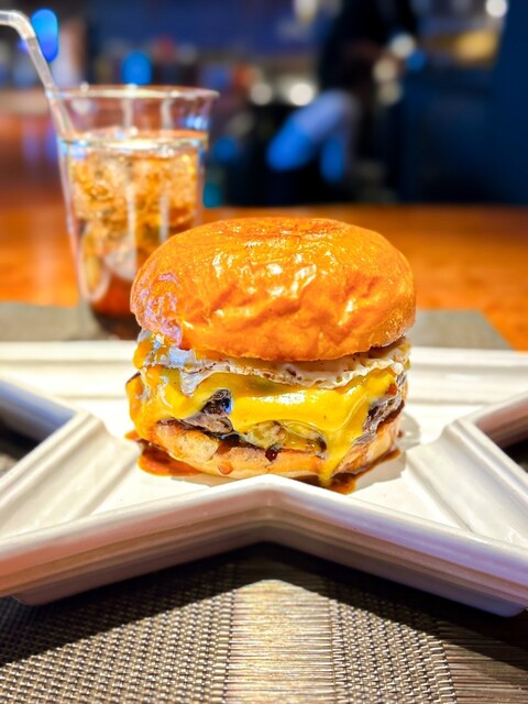 肉肉しいジューシーなパティに飴色玉ねぎとチーズ、エッグ、それに秘伝の照り焼きソース...
