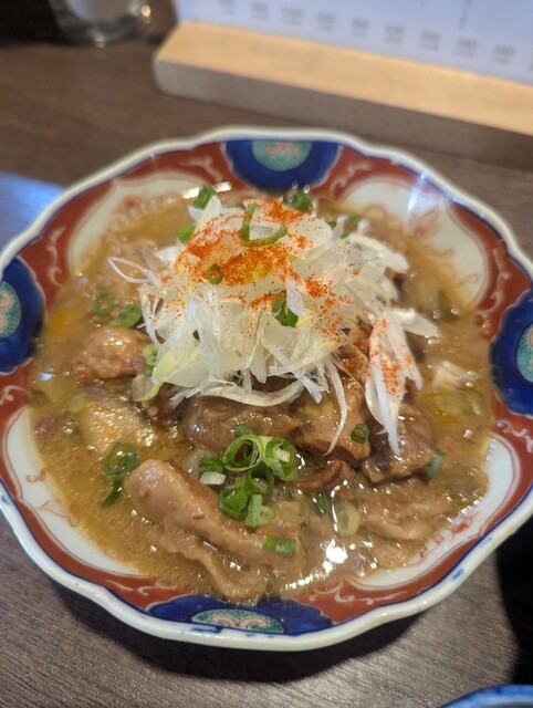 鴨肉のミートソースが海老芋を包んだ柔らかいワンタンにタップリかかってる