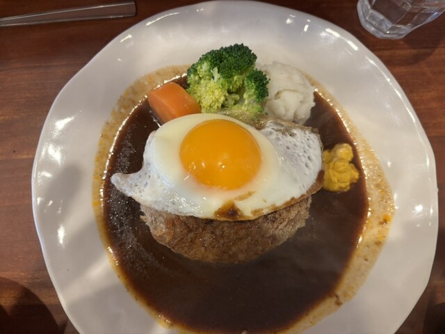 今日は、豚100%の250gオリジナルハンバーグをデミグラスソースでいただきました。ジューシーな豚肉の旨味が口いっぱいに広がり、濃厚なデミグラスソースが絶妙にマッチしています。付け合わせの野菜も彩り豊かで、食事全体のバランスが良好です。目玉焼きもいい塩梅の、アクセントです。アットホームな雰囲気の中、心温まるランチを楽しめました。名古屋でハンバーグを味わいたい方におすすめのお店です。絶対にまたきます。次はディナーでの訪問を予定しています。