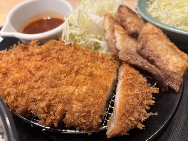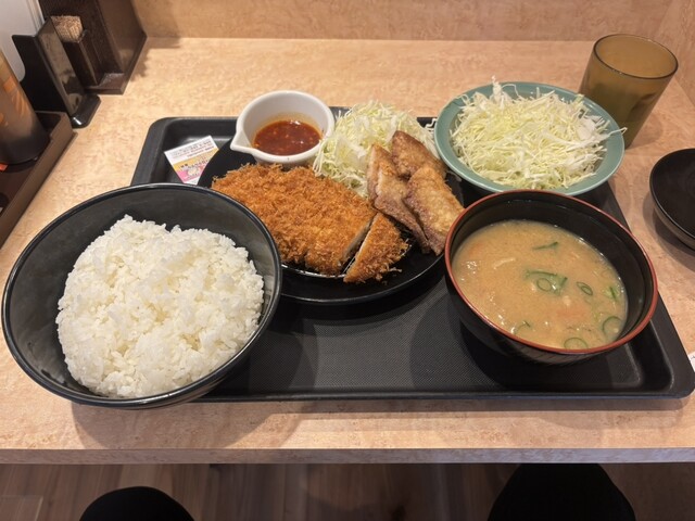 ロースかつ&ムートート定食を豚汁に変更ご飯大盛り、追加で千切りキャベツ
