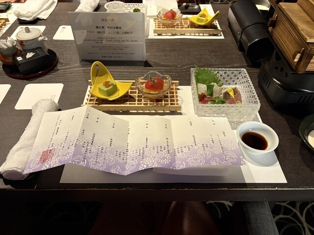 お刺身は場所柄もちろん、柔らかくて美味しかったです。鰻と焼きナスの博多も柔らかく、普段ナスはあまり好きではない私でも美味しく食べられました!夏野菜と和牛は、ローストビーフをビネガーソースと味がかなり強いトリュフ塩の2種類につけて食べられるので飽きが来ません。豚温泉蒸しは野菜がしっかり入っていて健康に嬉しいです!たれがクリームセロリだれという珍しいものですが、酢も入っていてさっぱり食べられました〜
