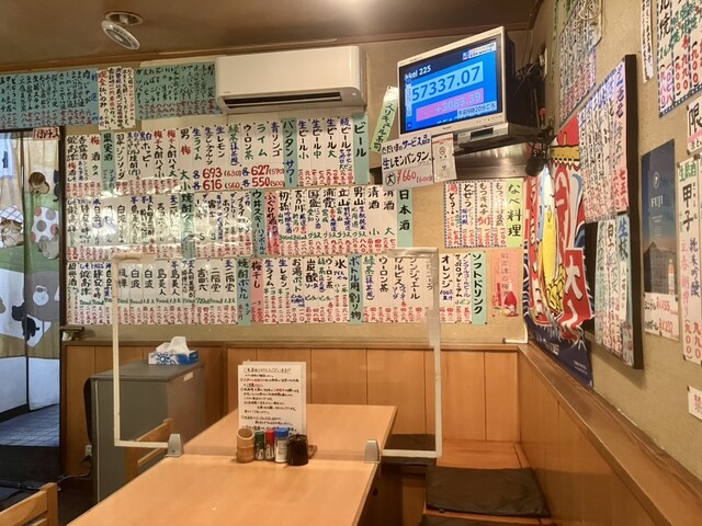 暖簾をくぐれば、壁一面を埋め尽くす大量のお品書きがお出迎え。