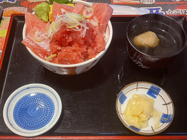 今回頼んだ中とろ丼は、開店から早い段階でないと食べられない代物です。どうしても品数には限度がありまして、赤身と中とろが混ざった丼で、と言われてしまうこともあるので注意してください。