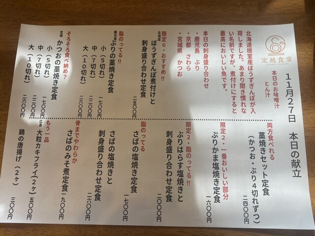 今回は、のどぐろの塩焼き定食とかつおの藁焼き3切れをいただきました。