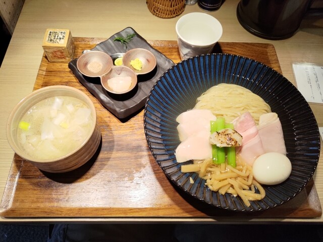 利用難易度激ムズのほたてつけ麺。色々な食べ方が出来るつけ麺と、トリュフが美味いチャーシューごはんと、とても愛想が良い接客で、全てがトップクラス