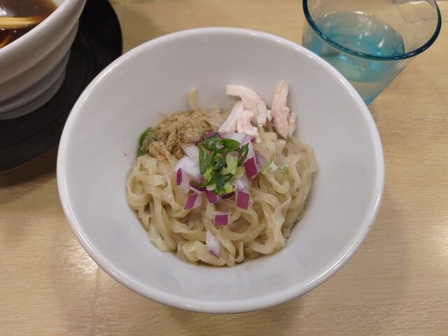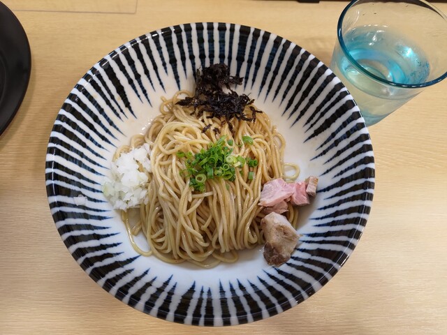 まずはにぼしらぁめん冷やし降臨。煮干し強め、塩味強めでなかなか濃い味です。冷やしの為に強い味にしているのか、もう少し違う出汁欲しかったかな?何か物足りない感も感じた気が。