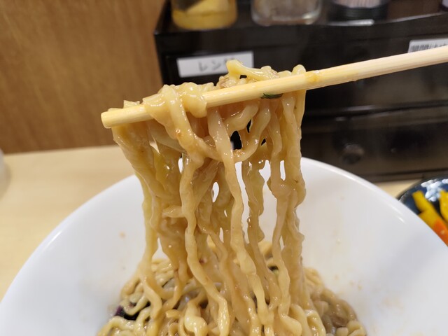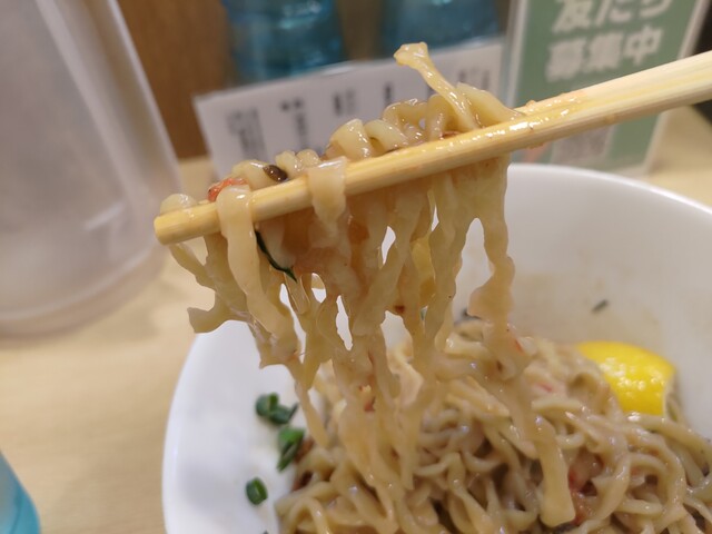 まずは混ぜずに底に沈んでる麺をタレを絡めて一口。
