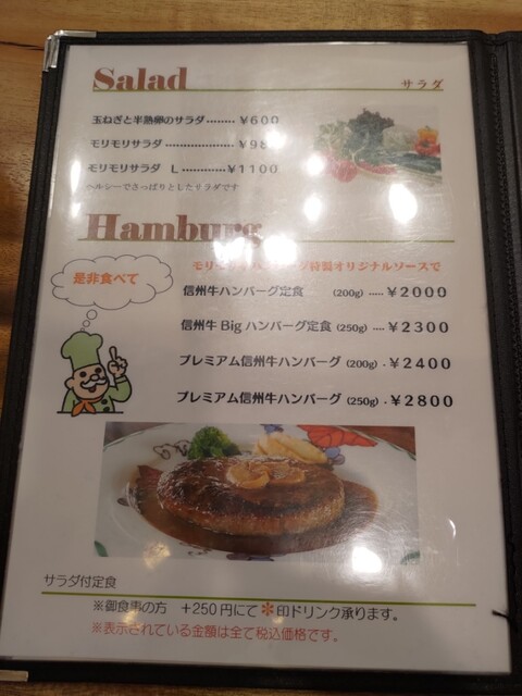 更にチェックしてみると、人気メニューは、プレミアム信州牛ハンバーグ?メディアでも紹介されたことあるらしい?いや、美味そう。食いてぇ。