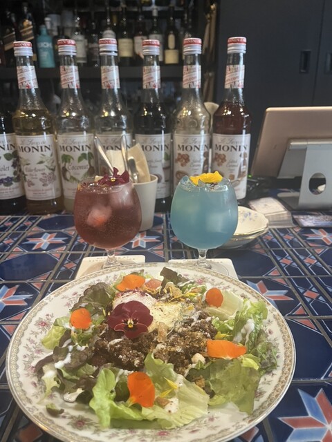 店内はドライフラワーなどが飾ってありとても雰囲気のいいカフェバーのようでした。軽めのカクテルを注文しました。料理はエディブルフラワーが飾ってあり、とても写真映すると思います。今回は売り切れでしたがカップケーキもあるそうで、次の時の楽しみかなと思います。