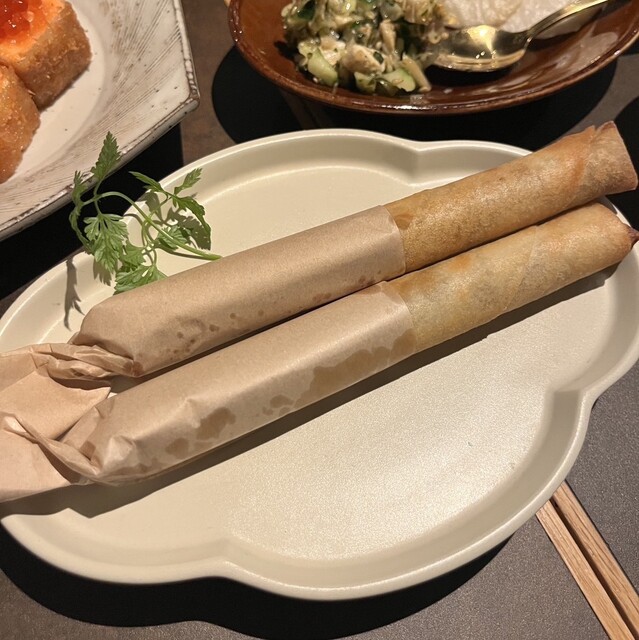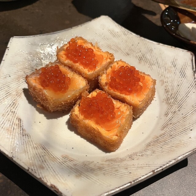 料理はどれを頼んでもとても美味しかったです。特におすすめしたいものはサーモンのレアかつです。脂が乗っていて柔らかく上のいくらも美味しかったです。1.2ヶ月ほど前からサーモンのレアかつが食べたいなと思っていたこともあり食べられて嬉しかったです。またきのこの春巻きも中の具材の味がしっかり感じられて美味しかったのでぜひ食べてみてほしいです。