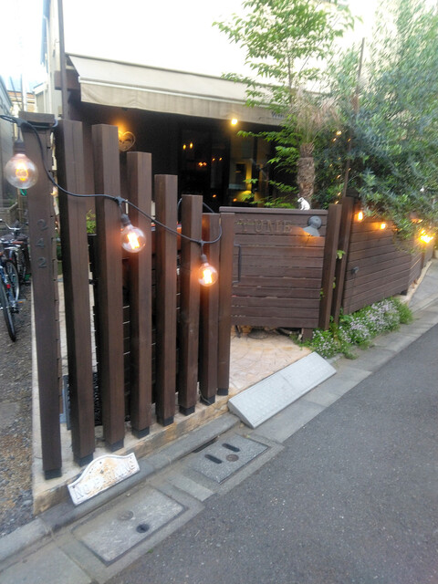 入り口からおしゃれな作りなテラス席、店内は広くはないですがインテリアもおしゃれで、バーカウンターの後ろのお酒の数や片隅の多数のワインのコーナーに圧倒されます。