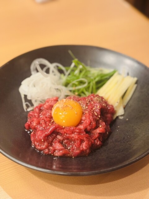 今回は初めて飛び切りコースを注文しました。赤身とサシのバランスが絶妙で、どのお肉も分厚くて食べ応えがありました。スライスユッケは肉差しのような食感で、甘辛ダレと卵黄が絡み合う絶妙な味わいに感動しました。