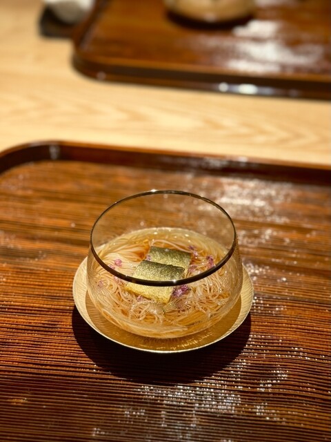 さらに登場した「鮎素麺」は、意外にも繊細な組み合わせ。細い麺に鮎の香りがほんのり移り、涼やかで上品な締め。