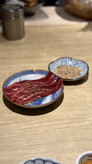 続くハチノス湯引きは弾力と歯切れのバランスが異次元。ポン酢はマイルドながら旨みが強く、これもマストオーダー。特上塩タンは細かく刻まれた塩昆布とともに。塩味・昆布の旨み・タンの肉感が完璧に重なります✨