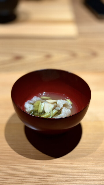 猪肉を一緒に煮込んだスープはポタージュのような濃度で、濃厚なのに重さがなく柚子の香りが全体を美しくまとめます。記憶に強く残る一杯