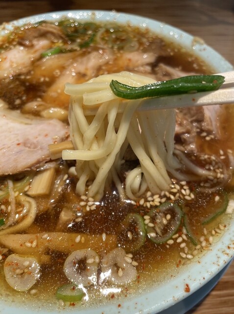 チャーシューの旨味が詰まったスープに、ヒリヒリする辛さがアクセント!