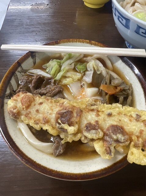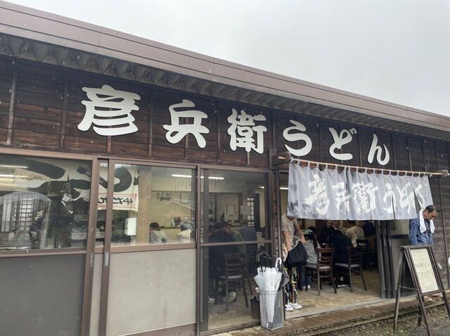 彦兵衛うどんは、肉、たまご、ちく天、きんぴらの全部乗せうどん。