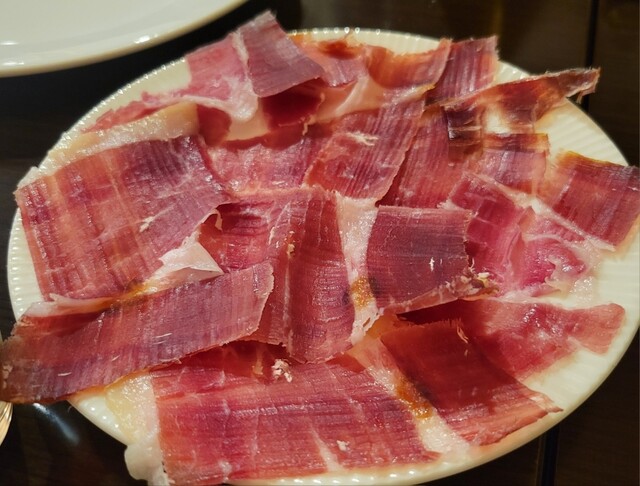 前回オーダーして気に入ったイベリコ豚の生ハムとスペイン風肉だんごに加え、今回は魚介系のお料理をメインにオーダー。