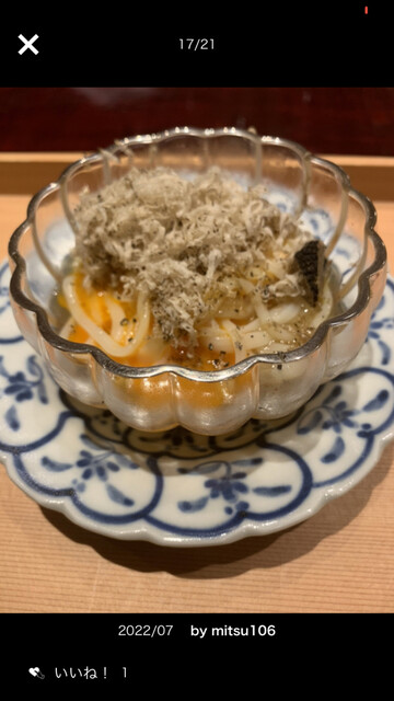 ・サマートリュフのそうめん…太めの大矢知そうめんにたっぷりとトリュフがまぶされています
