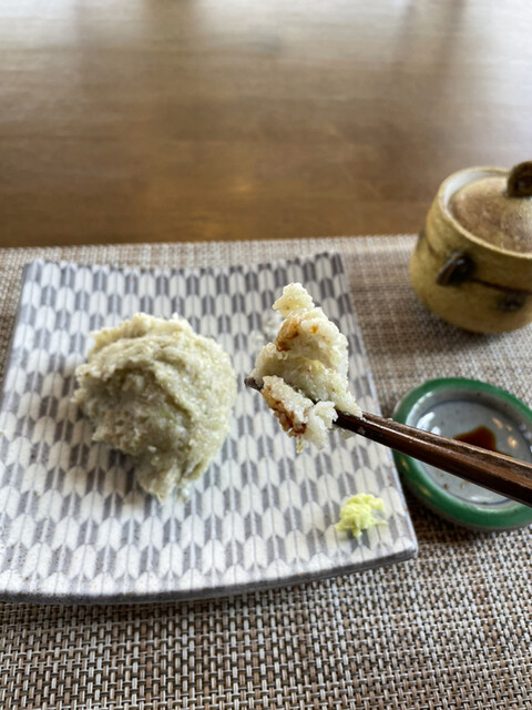 蕎麦がきは、塩と醤油とワサビで!(๑>◡<๑)