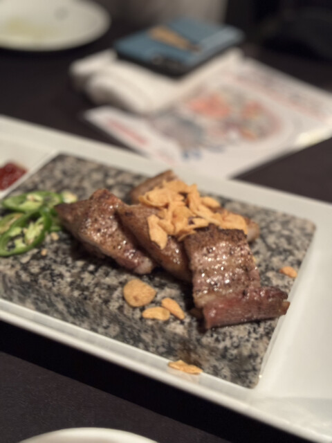 サムギョプサルはサンチェ、ゴマの葉、青唐辛子、コチュジャンは絶妙に辛くて美味い