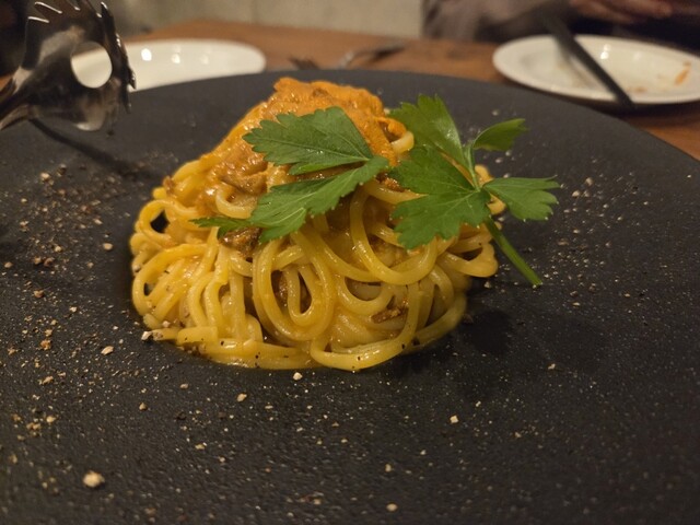 サラダがほんとにたっぷりでおいしくて絶対頼んでほしい。パスタはウニといえばクリームというチョイスもあるんだけど珍しくてオイルにしたら濃厚でとてもおいしかった。そしてカニクリームコロッケよ!ほんとなんでも美味しくてありがとうございます!