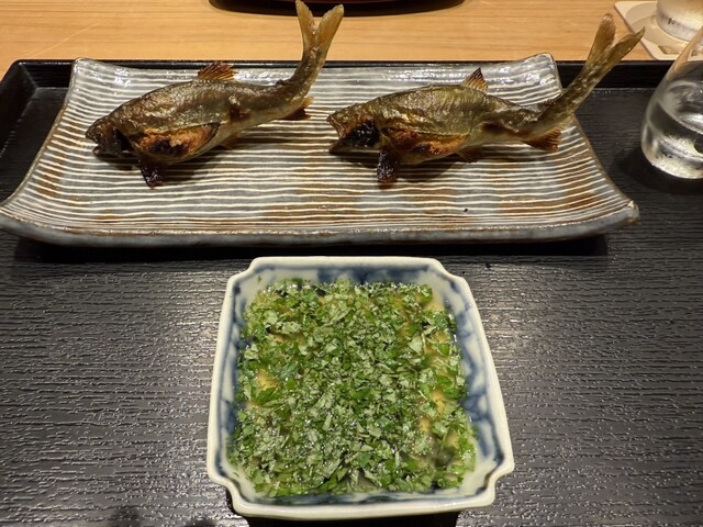 子持ち鮎、木の芽酢