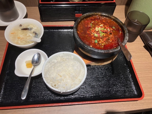 30度越えの真夏日に、煮えたぎる麻婆豆腐定食を食べる