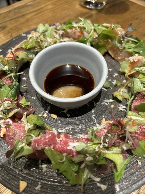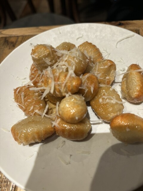 おつまみに最高だったのが食べ放題のサラダとチーズとメープルがかかったニョッキ。