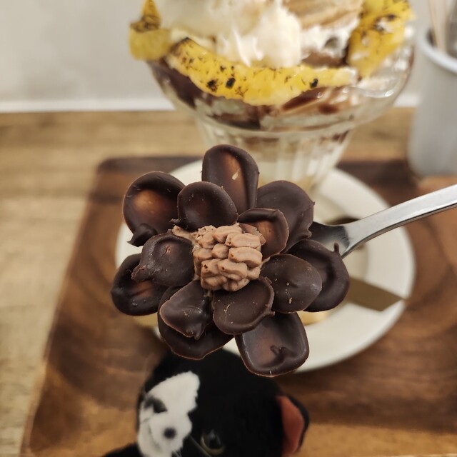 私、好きなもの(美味しそうな所)から食べるタイプ(笑)なので、大輪のチョコの花からいかせていただきました( *´艸`)