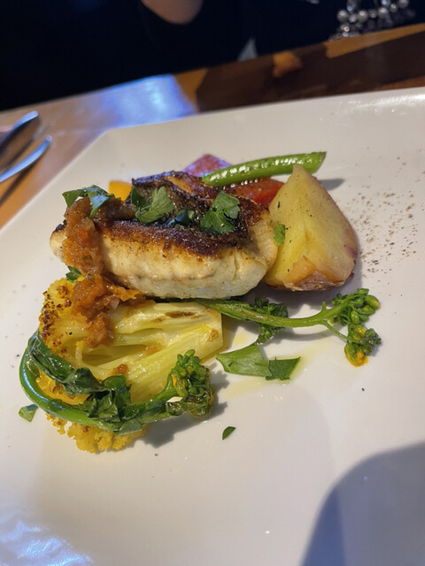 メイン 肉は子牛魚はコショウ鯛だったかな、コントルニの