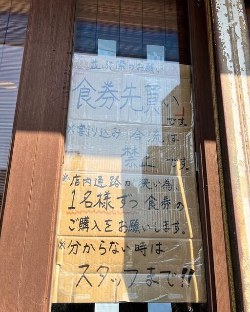 先並び、案内後食券購入。代表待ち禁止。