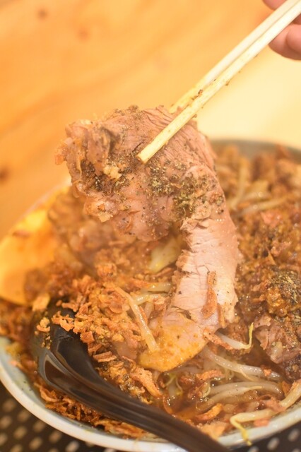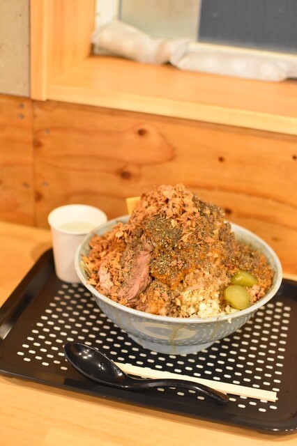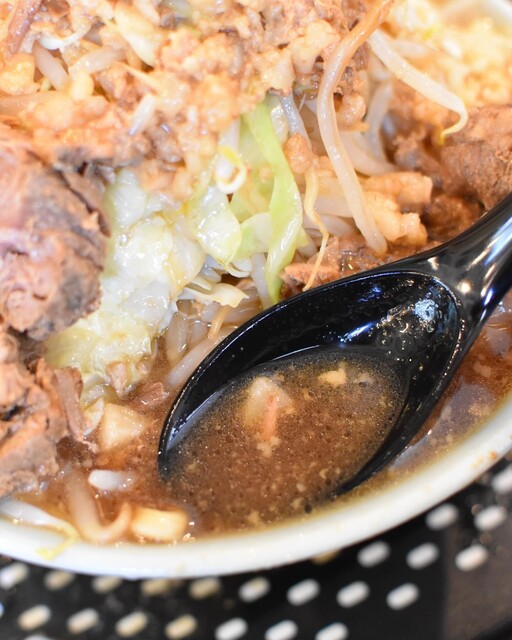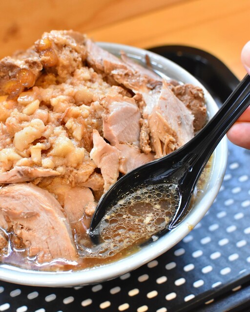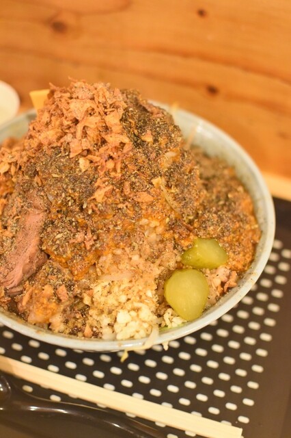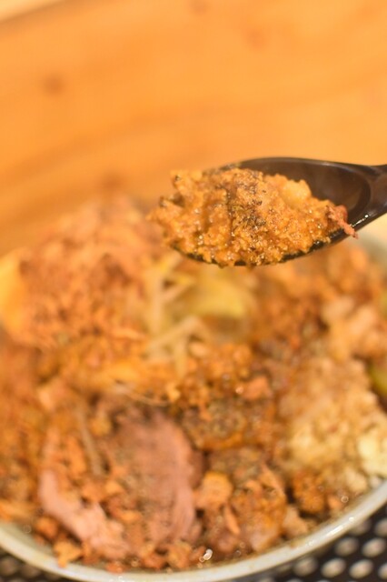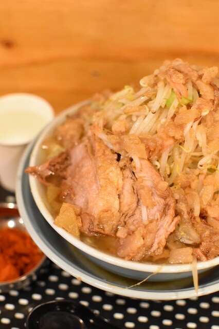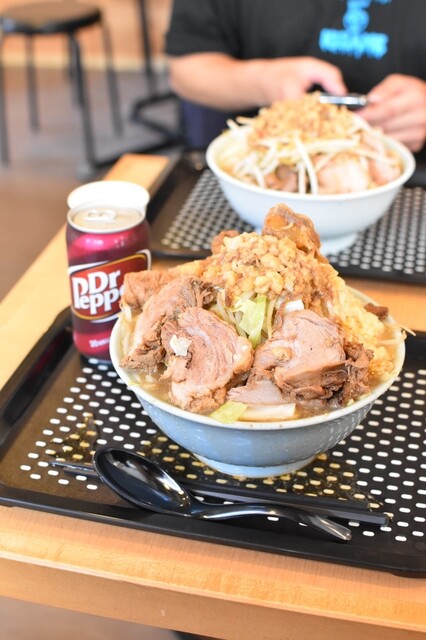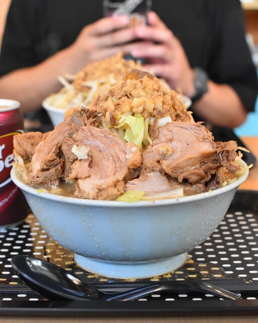 今回のコールは「ニンニクあり、野菜マシマシ、アブラマシマシ」に加え、贅沢に「チーズとフライドオニオン増し」で攻めてみました♂️