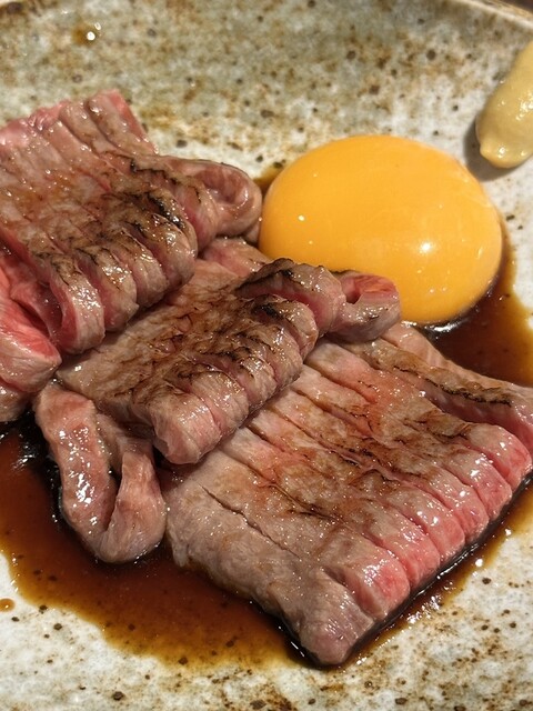 【レアステーキユッケ】鮮度がいいからこそできる一品!柔らかさとタレとの相性最高で白米が欲しくて欲しくてたまりませんでした...(オプションは冷麺にしたので白米はおあずけ...)