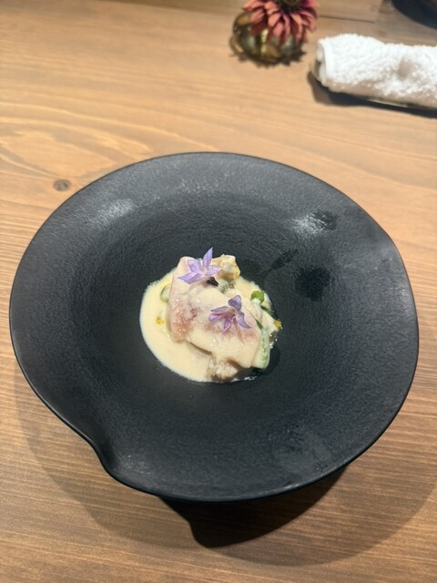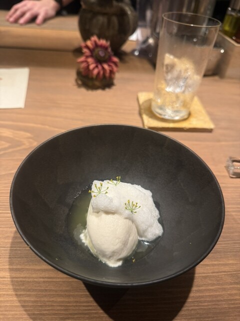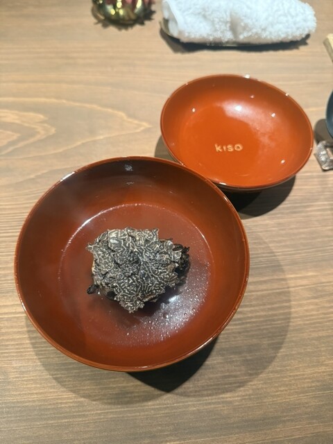 一番心に残ったのは、お椀のポルチーニ茸・黒トリュフ・黒舞茸。香り、旨み、全てが一体になっていて、きのこ好きにはたまらない一品でした…!(°▽°)