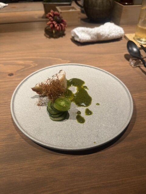 特に印象に残ったのは、雲丹・とうもろこし・そうめんかぼちゃの一品。夏らしさを感じる爽やかな組み合わせで、食感も楽しく、初めての味わいでした。そうめんかぼちゃは個人的に初体験。