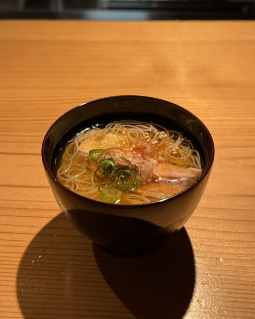 締めの素麺は白髭というブランドで細くてコシがしっかりあり、お出汁良い香りでおいしすぎて驚きです