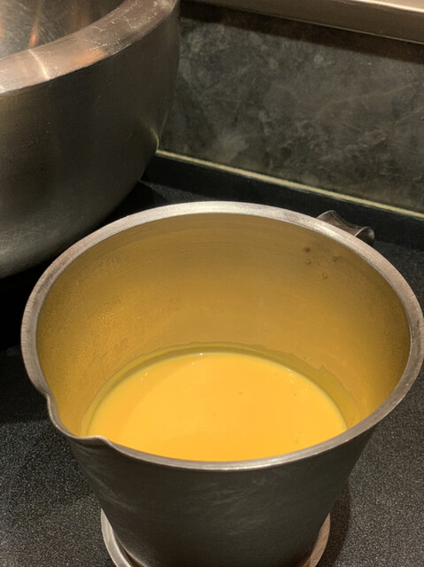 宮崎県産の濃厚フレッシュなマンゴージュースを液体窒素で固めていく。