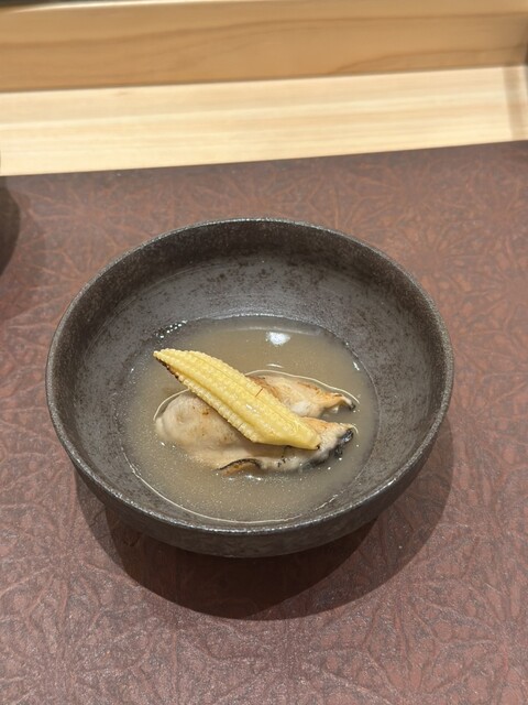 さっと焼いた牡蠣にしじみの濃厚なスープにバターを加えたソースを合わせる。