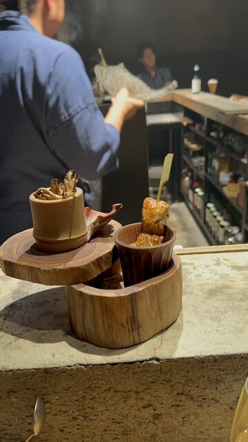 焼鳥は出されたらすぐ頂きたいが、最初見る時間が必要と感じる。